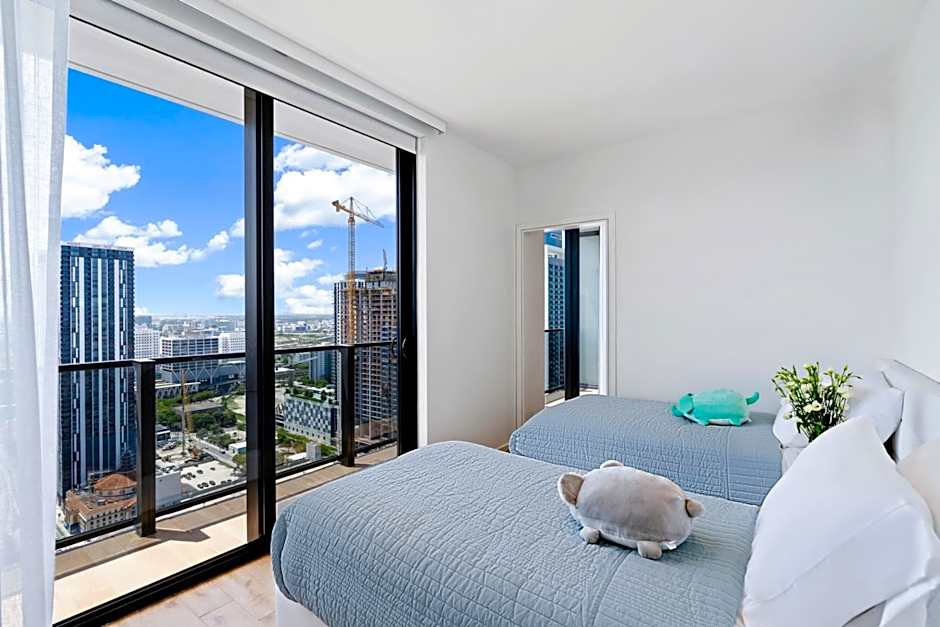 This spacious suite features 1 living room, 3 separate bedrooms and 3 bathrooms with a walk-in shower and free toiletries. Meals can be prepared in the kitchen, which has a stovetop, a refrigerator, a dishwasher and an oven. The air-conditioned suite features a flat-screen TV with cable channels, a washing machine, a seating area, a wardrobe as well as city views. The unit has 5 beds.