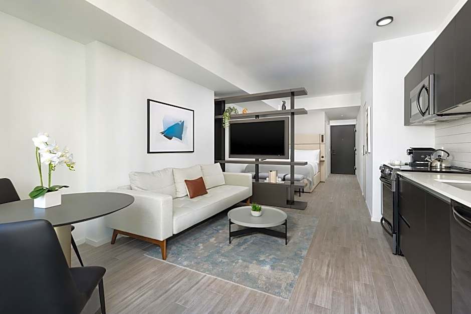 This spacious suite features 1 living room, 1 separate bedroom and 1 bathroom with a walk-in shower and free toiletries. In the kitchen, guests will find a stovetop, a refrigerator, a dishwasher and an oven. The air-conditioned suite features a flat-screen TV with cable channels, a washing machine, a seating area, a wardrobe as well as city views. The unit has 2 beds.